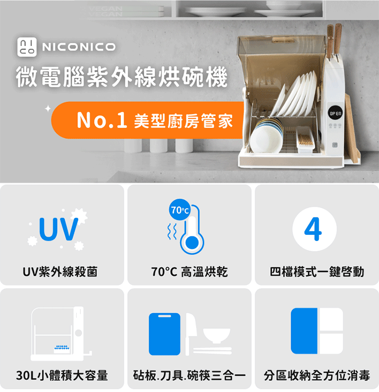 【NICONICO】微電腦紫外線烘碗機NI-K2016
